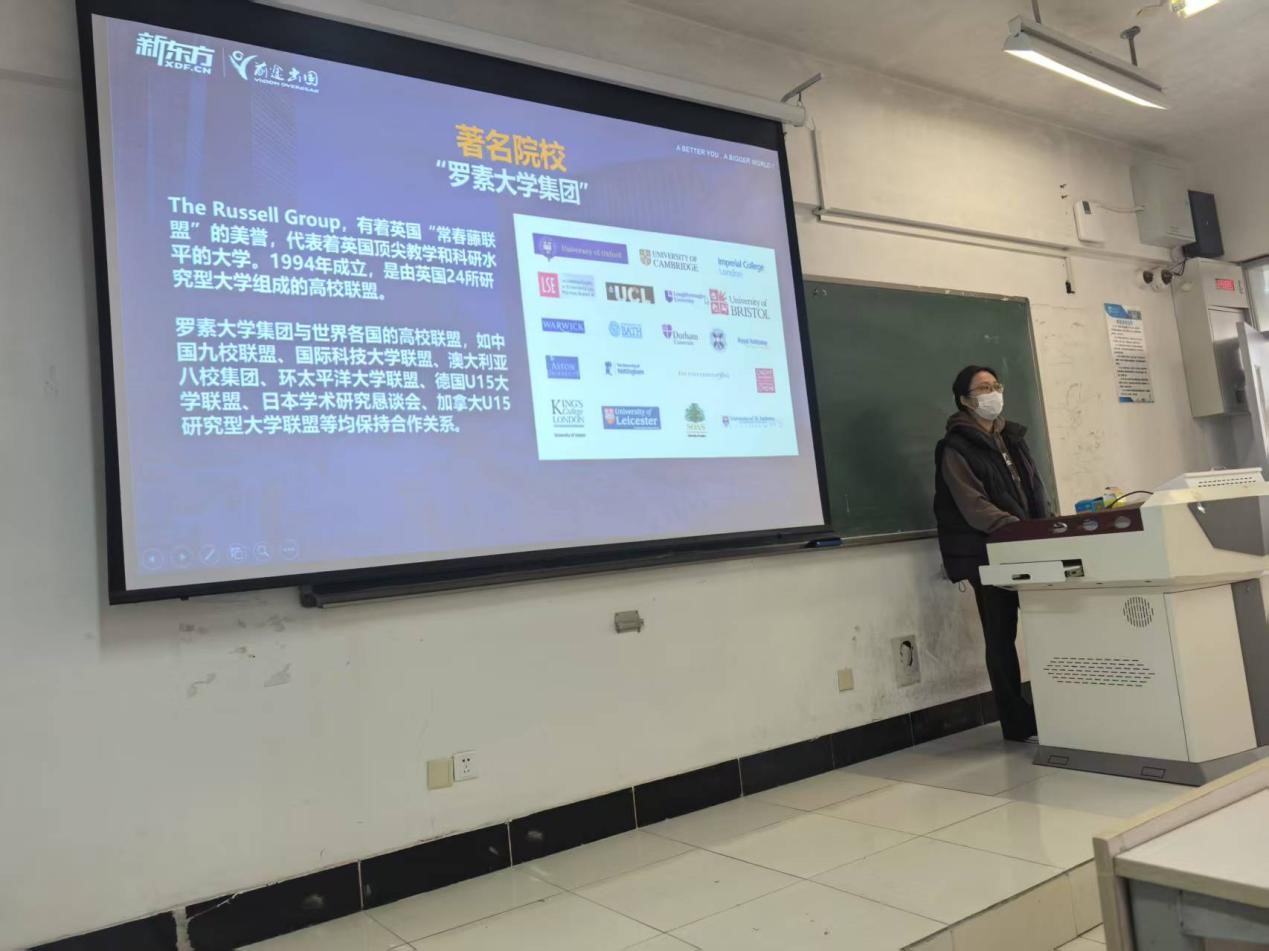 讲座伊始,新东方留学规划师刘玉贝老师凭借丰富的经验和专业知识,围绕留学申请的各个关键环节展开讲解。从如何根据自身条件选择合适的国外院校,到制药专业在国际上的发展趋势与就业前景,再到申请所需的各项材料准备,如成绩单、推荐信、个人陈述等,都进行了细致入微的分析。同时,还分享了面试技巧以及如何在申请中突出个人优势,让同学们对出国流程有了更清晰的认识。此外,刘老师还为同学们介绍了国际排名比较靠前的知名大学申请条件等。