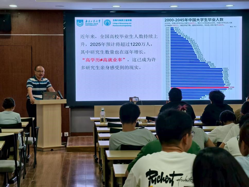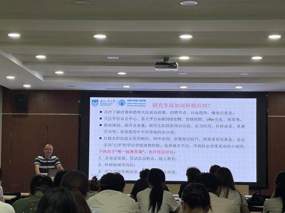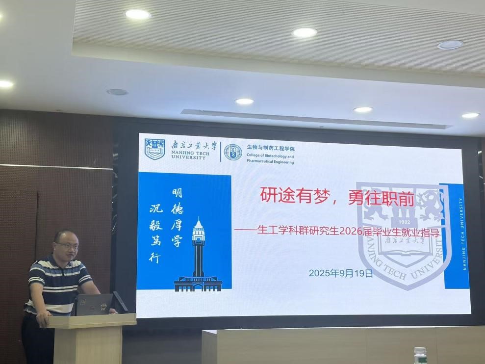 为进一步促进研究生求职意识,提升求职竞争力,9月19日-22日,生工学科群“研途有梦,勇往职前”2026届毕业生就业指导系列讲座于尚德楼A楼报告厅开展。讲座由公司党委副书记兼纪委书记徐元龙、辅导员吴雪、张健和食品公司教师黄巍巍担任主讲人,全体2026届毕业生分别以线下和线上形式参加活动。