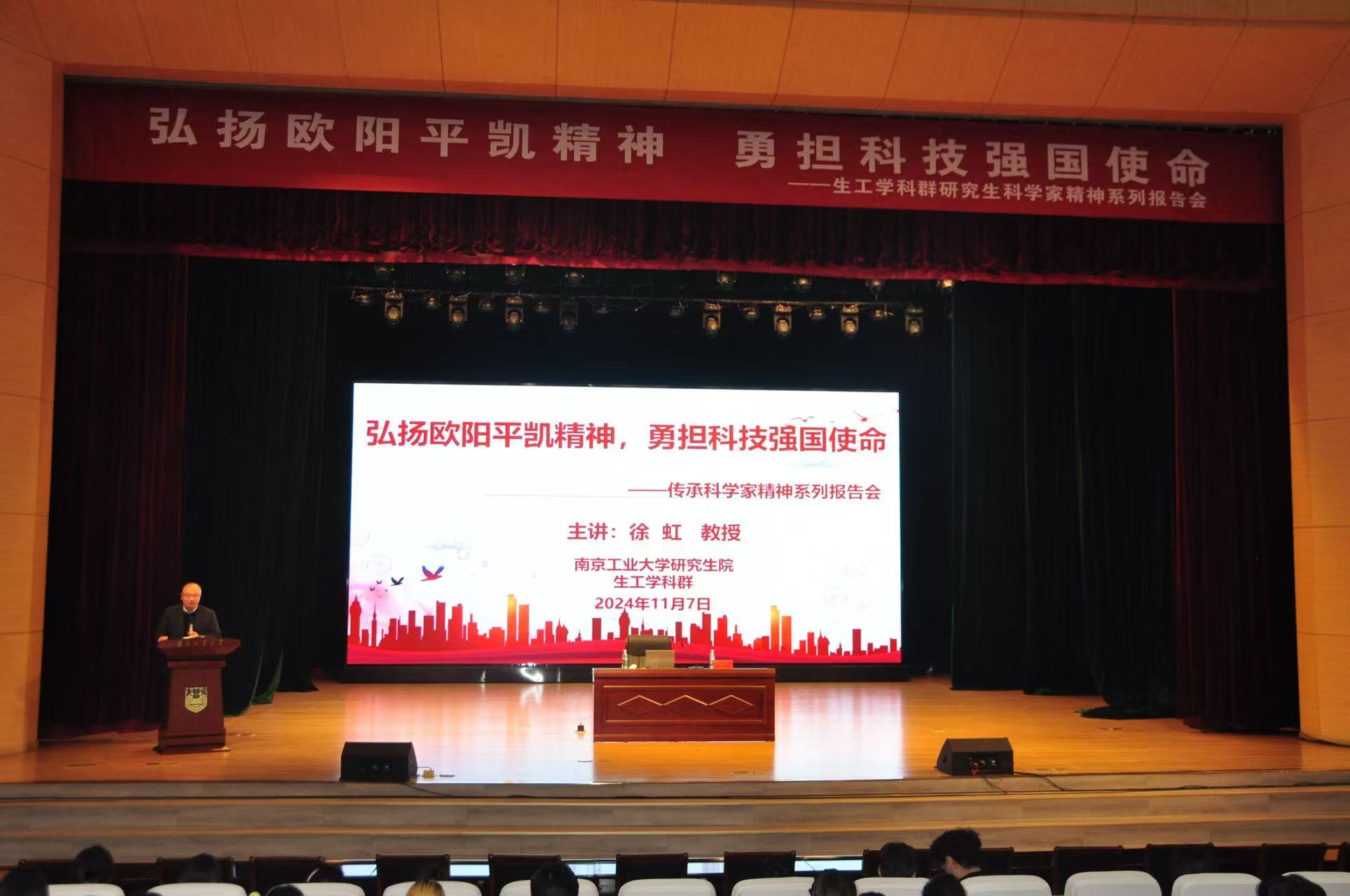 为大力弘扬欧阳平凯精神,切实发挥科学家精神对培养造就青年科技人才的引领作用,11月7日下午,生工学科群于博雅堂举办“弘扬欧阳平凯精神,勇担科技强国使命”报告会。此次活动特别邀请了第三届全国创新争先奖章获得者、中国化工学会生物化工分委员理事、公司食品与轻工公司徐虹教授担任主讲嘉宾,报告会由公司党委副书记、纪委书记徐元龙主持,党委研究生工作部副部长高洁、研究生辅导员吴雪和全校各公司500余名研究生参加报告会。