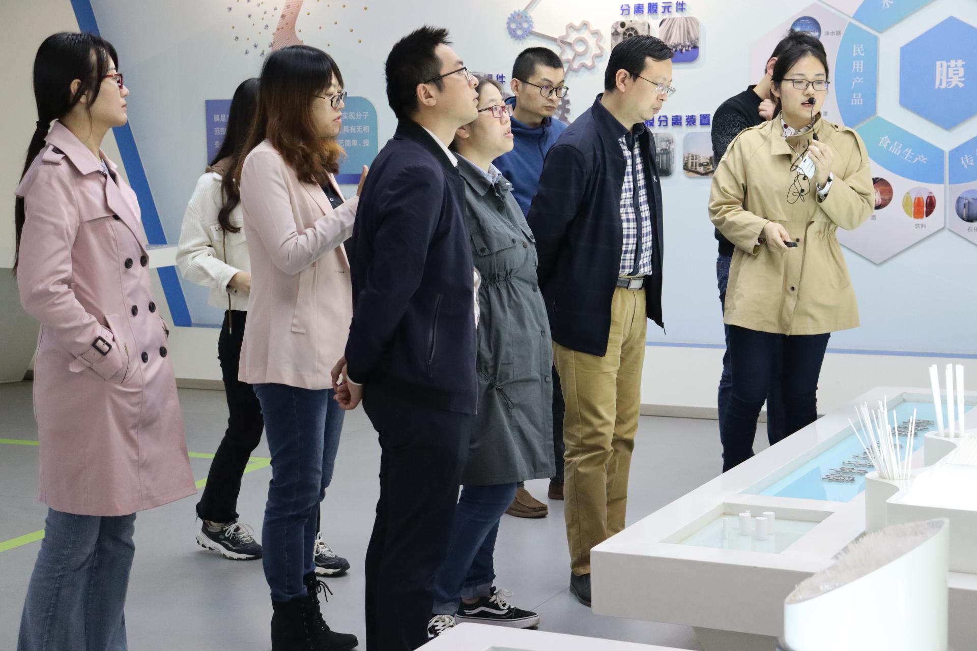 1022日一早,支部全体党员来到南京膜材料产业技术研究院及其下属生物传感器事业部参观。在研究院展示厅,支部成员认真聆听讲解,详细公司膜技术的发展史与研究院在应用转化方面的辉煌成果。在生物传感事业部,支部成员参观了生物传感芯片生产车间和相关产品,并与主持相关科研成果转化的储震宇教授进行了座谈交流。在交流中,储教授向大家介绍了相关技术的研发历程,分享了自己科研成果转化与创业的心得体会,随后,与会人员围绕科研人员创新创业方面的热点问题进行了热烈的讨论。