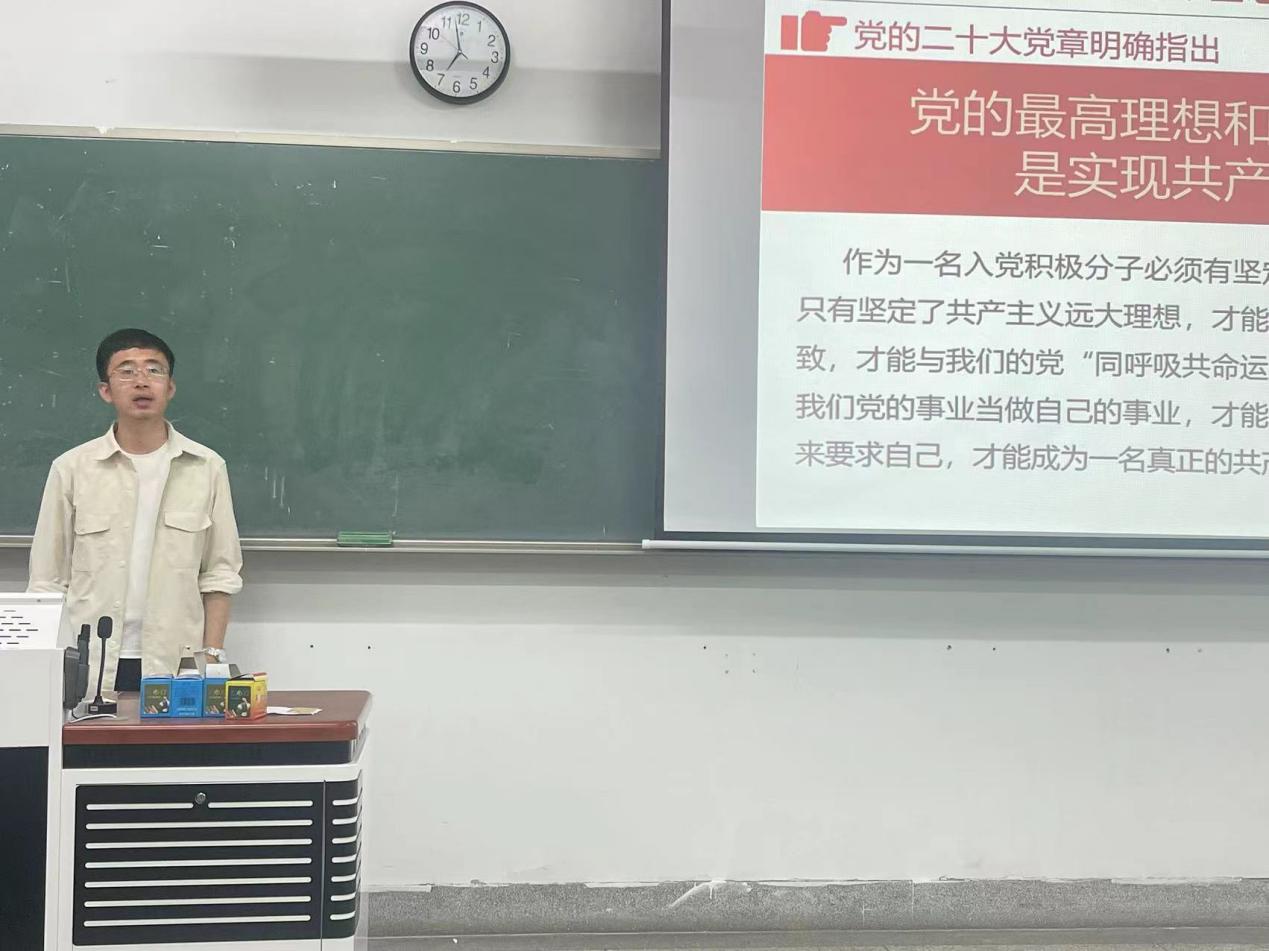 在培训班开班前,同学们通过自主学习方式深入学习了《中国共产党章程》、《中国共产党发展党员细则》等理论知识及党的二十大报告全文,为后面党课学习奠定基础。通过观看江苏高校师生党员基本培训“第一课”课程视频、芮鸿岩书记“学习贯彻习近平总书记关于党的建设的重要思想 切实增强高校基层党组织政治功能和组织功能”的党员培养课程视频,系统回顾了我们党团结带领人民为实现民族复兴而不懈探索、接续奋斗的光辉历程,深入阐述了新时代以来党和国家事业取得的历史性成就、发生的历史性变革。一系列生动的故事激励着每一位入党积极分子努力学习科学文化知识,努力提高为人民服务的本领。