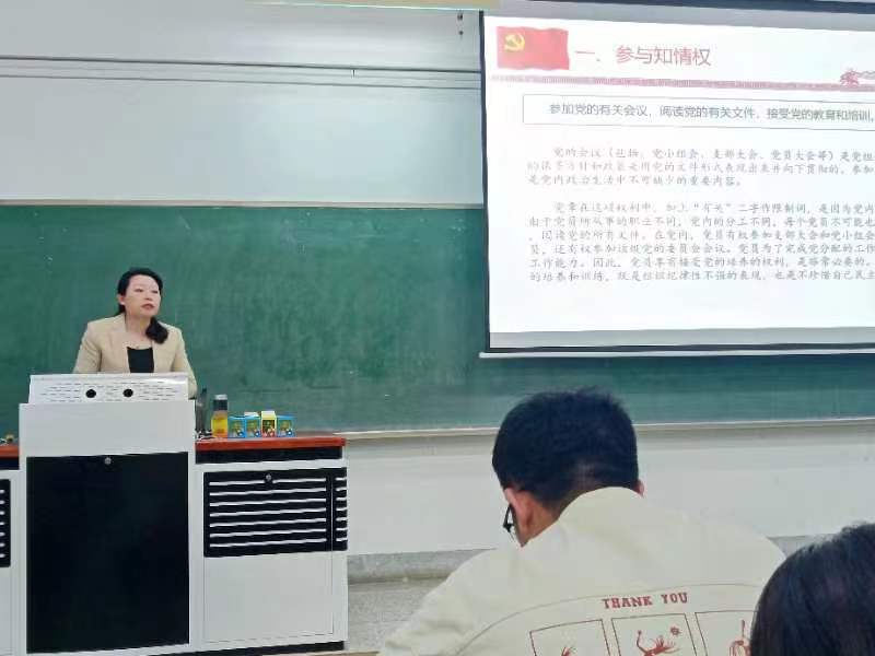 公司党委书记高振以党的二十大精神为题,结合习近平新时代中国特色社会主义思想,强调作为当代老员工,要体现出青年担当,为科技兴国贡献应有力量。徐元龙副书记从党史学习入手,回望过往的奋斗路,眺望前方的奋进路,希望同学们不断深化历史认知、坚定历史自信、强化历史担当,从党的历史中汲取智慧和力量。公司原党委书记缪昌美以学习党员院士欧阳平凯精神,做“忠诚精神”新人,鼓励同学们既要具有专业技能,又要具备良好思想道德素养,能够在实践中担当重任,为党和国家的事业发展贡献力量。食品与轻工公司党委副书记王浩围绕《中国共产党党员教育管理工作条例》,讲解“三会一课”、主题党日、集中培训等基本制度。员工党支部书记朱皓、张健、宋亲、贺鑫、苏少丽等分别围绕党支部工作条例、党的组织原则和纪律原则、入党积极分子如何坚定理想信念以及党员义务和权利进行深入讲解。