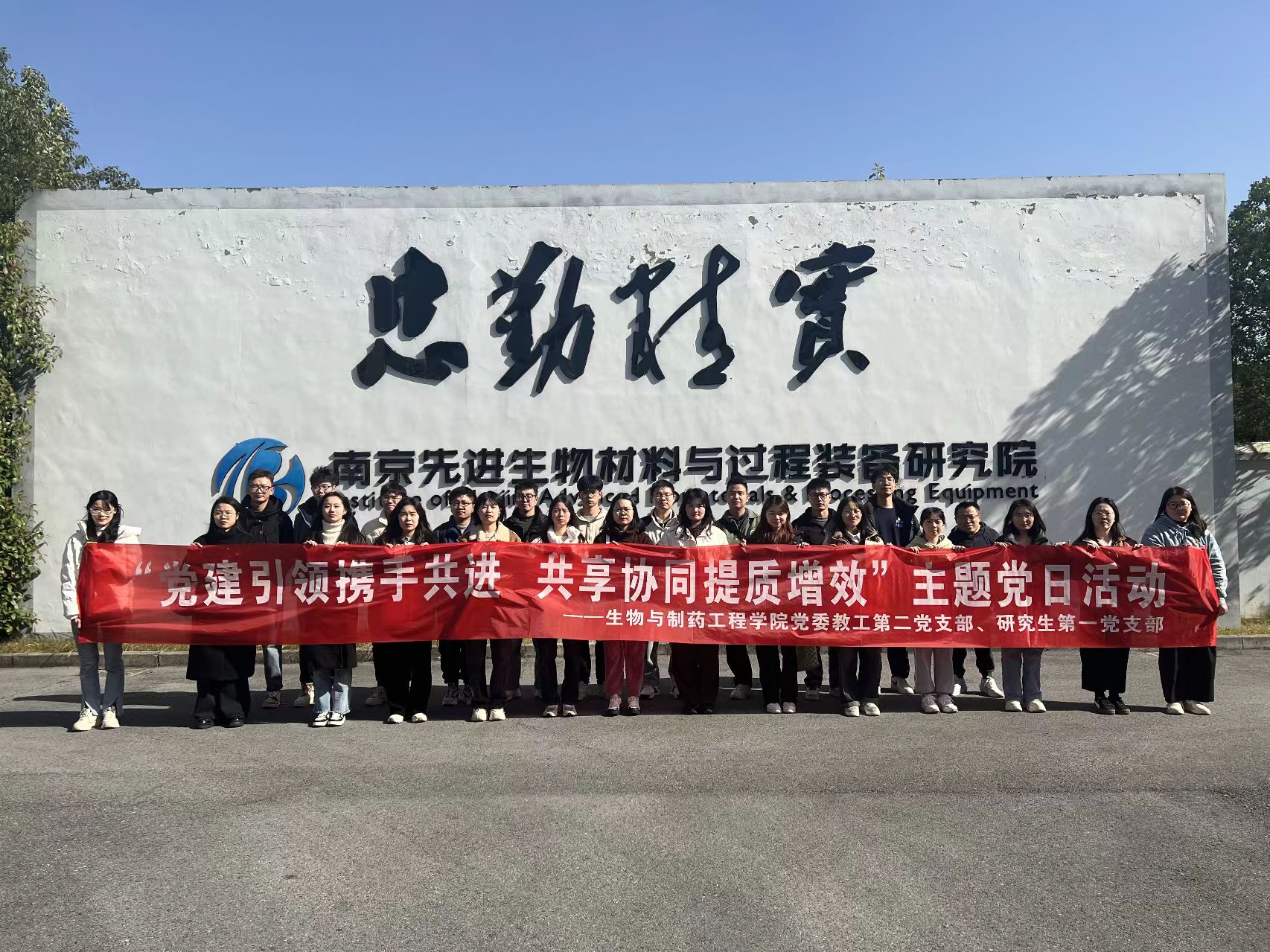 12月2日,太阳成集团tyc33455cc研究生第一党支部同教工第二党支部共同前往南京先进生物材料与过程装备研究院(IBP)学习交流。研究院负责人首先向大家介绍了研究院设立的背景、目前涵盖的微流场、生物基材料及材料助剂等产业化现状,切实展示出科学研究院为社会所作的贡献。随后负责人带领大家参观了车间与实验室,逐一介绍研发成果与研究设施。
