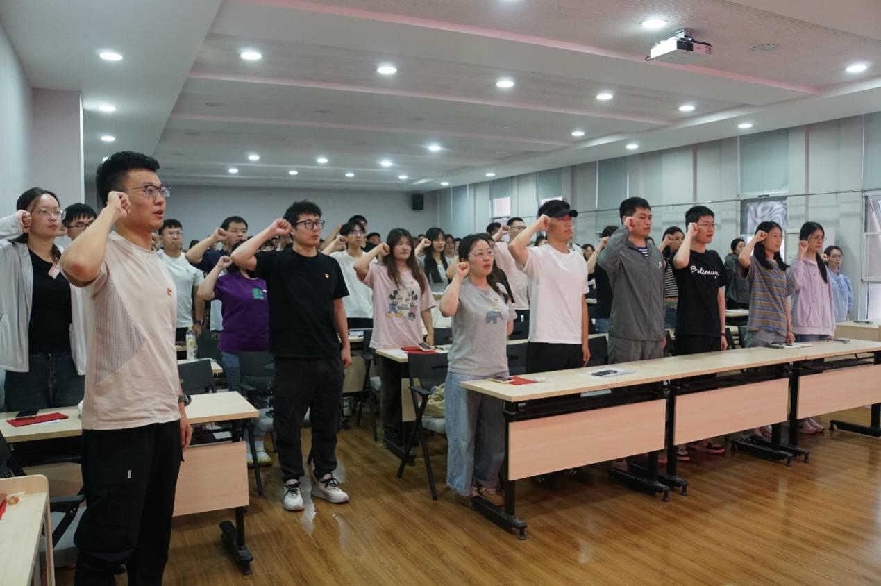 徐元龙书记给全体毕业生党员上了专题党课。他首先肯定了大家在校期间在班级建设、学风建设和榜样引领中发挥的显著作用,希望大家进入新岗位继续发挥好党员先锋模范作用。随后结合党的作风建设要求和党纪党规中的行为规范,以及典型案例分析,嘱托大家扣好人生第一粒扣子,并带领大家重温入党誓词。
