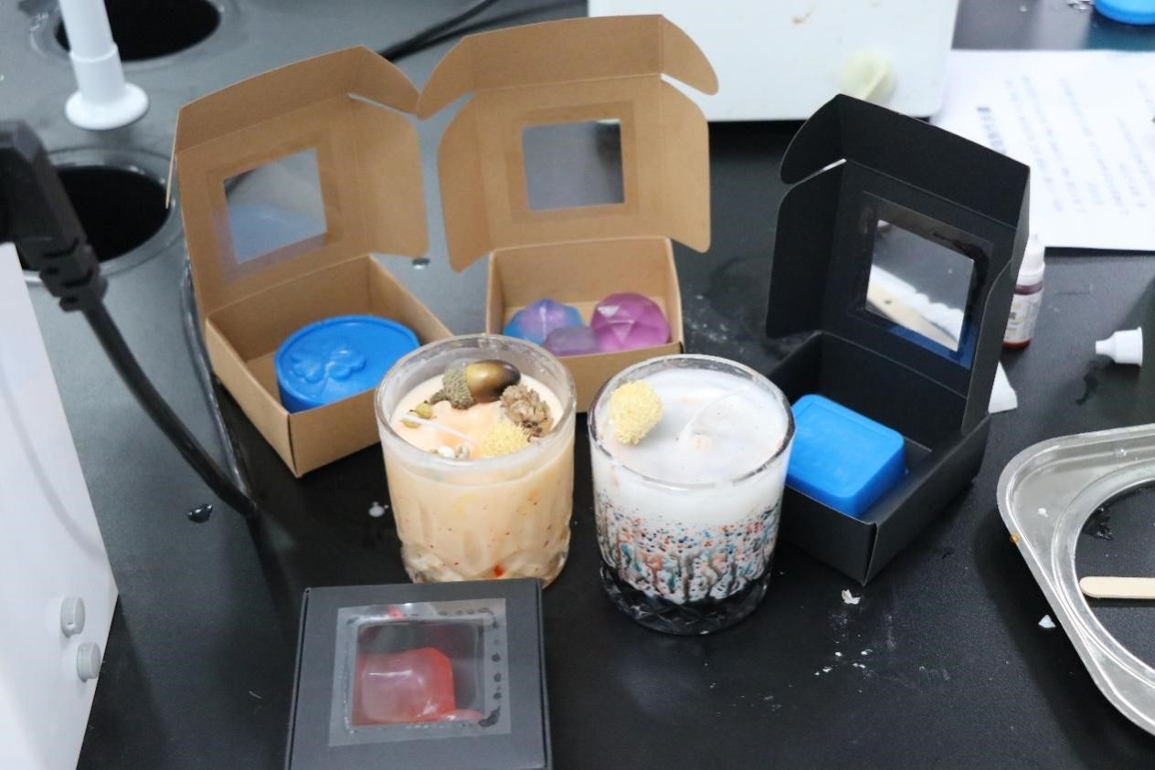 本次“造物集”活动共分为三场,来参加活动的同学们络绎不绝,在员工会工作人员的带领和示范下,同学们了解了配料比例、用料先后以及制作流程等,接着调配实验材料,搭建实验装置,经过一系列的操作与等待,成功制作出了润唇膏、香熏蜡烛以及手工肥皂。活动期间也有不少同学遇到突发状况,在工作人员的帮助下,老师的悉心指导下,同学们积极改进,最终获得成功。