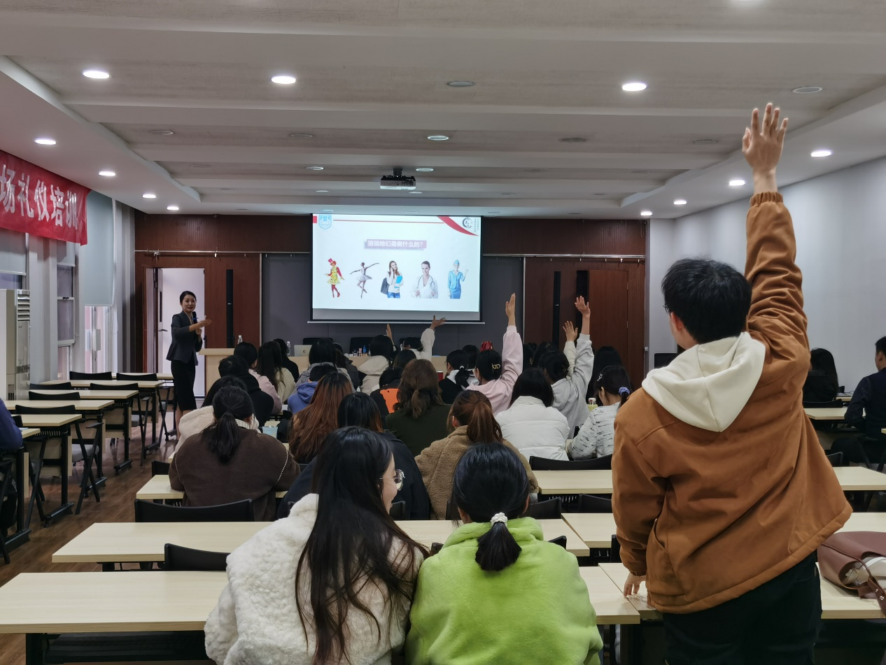 为促进员工德智体美劳全面发展,推进教育部关于2024届高校毕业生就业创业工作部署,培养员工美育素养,提升员工就业竞争力。太阳成集团tyc33455cc于12月6日下午邀请专业礼仪培训名师唐柔老师为公司毕业生开展以“以礼赴职”为主题的毕业生职场礼仪培训活动。活动由辅导员吴雪老师主持。