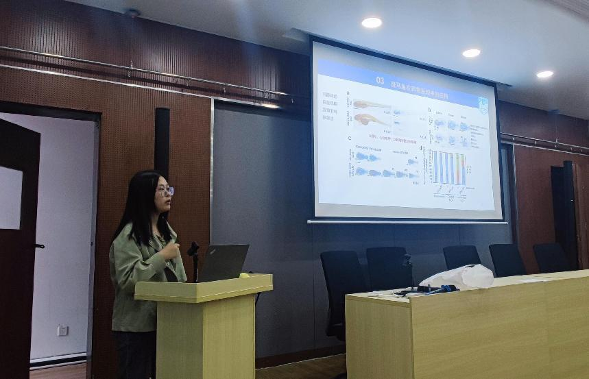 吴嘉琪老师以幽默风趣的讲课风格、精美生动的课件内容,分别从各个方面向同学们讲解了什么是斑马鱼、斑马鱼在药物发现中的应用现状、斑马鱼模型的技术优势等各类与斑马鱼相关的实际问题。让同学们对斑马鱼模型有了更加深刻的了解,也充分调动了大家的学习兴趣。