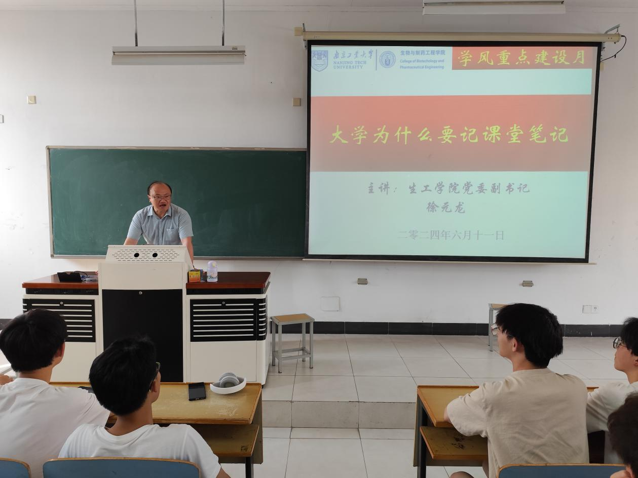 徐元龙书做“老员工为什么要记课堂笔记”专题讲座,强调老员工记笔记的意义,既是提高学习效率的有效方法,也是对任课老师的尊重,同时是对自己和父母负责的一种学习态度,更是将来在职场领域胜人一筹的重要技能。希望同学们把记笔记养成一种习惯、练成一种修养、涵育成一种文化。