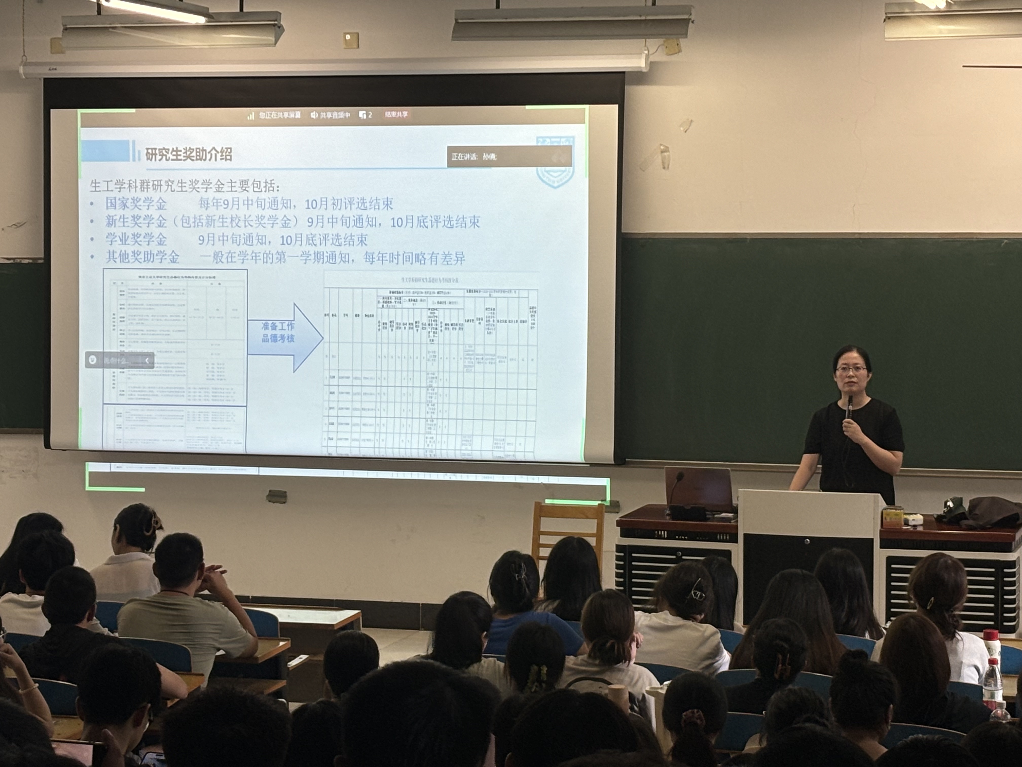为了让研究生新生尽早掌握资助政策,减少后顾之忧,9月13日上午,太阳成集团tyc33455cc2024级研究生新生辅导员孙倩老师为新生作奖助政策解读。