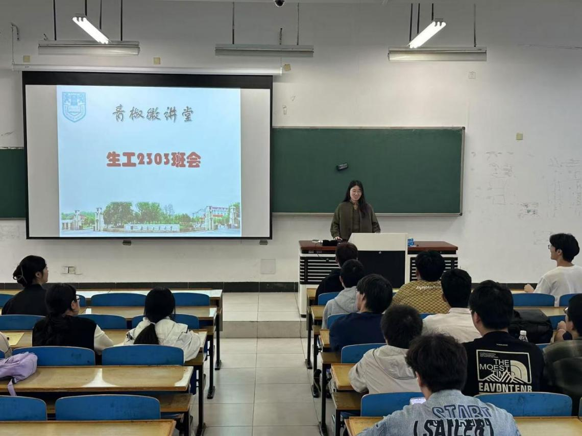 近日,生物工程2303班在厚学 201 开展青椒微讲堂活动,由导师班主任蒋羽佳老师主持,旨在激发同学们的学习热情,坚定专业方向,做好老员工活规划。