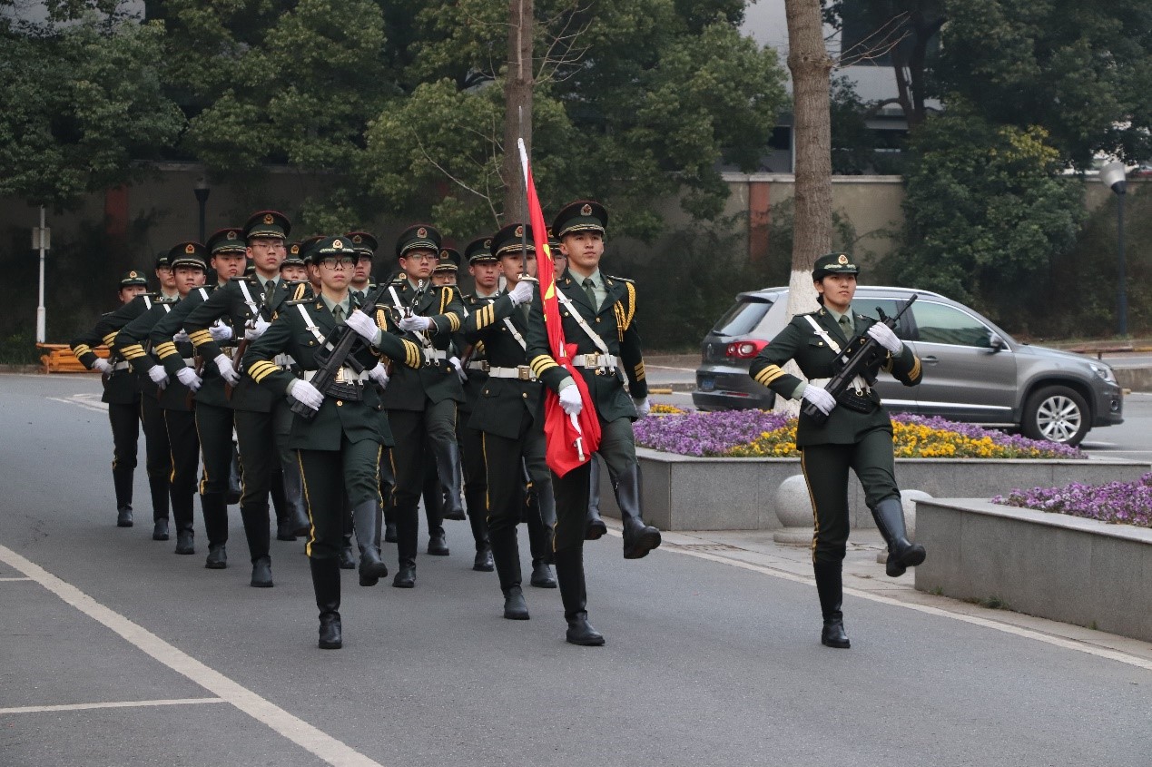 活动伊始,校国旗护卫队队员为全体师生普及《中华人民共和国国旗法》及《中华人民共和国国歌法》相关知识,强调每个人都有维护国旗国歌的义务,将爱国情怀扎根于心。迎着朝阳的曙光,五星国旗冉冉升起,全体师生行注目礼,合唱国歌。