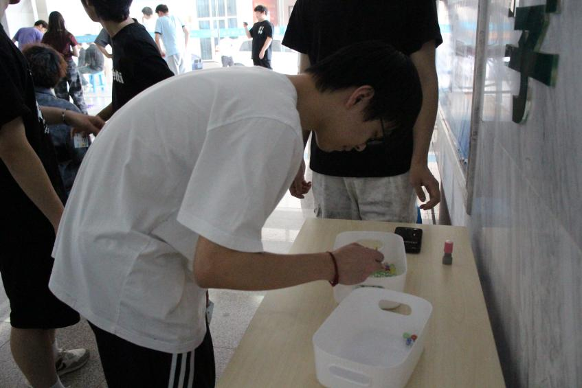 本次心理趣味运动会活动多样,将心理健康教育与趣味运动有机结合:“两人三足”活动中,两人绑腿前行考验默契,引导同学们在步伐调整中学会换位思考;“踩气球”将压力具象化为气球,用畅快踩踏帮助同学们释放负面情绪;“飞镖投掷”锻炼同学们的情绪稳定性;“蒙眼贴鼻子”活动中,蒙眼者在同伴语言指引下完成任务,深化团队信任感;“指压板过河”让同学们在“酸爽”体验中突破舒适区,培养逆境中的互助精神;“趣味挑豆子”考验同学们的专注力与抗干扰能力。活动现场充满欢声笑语,秩序井然的同时氛围也积极活跃。扭蛋机这一独特的抽奖方式也为本次活动增添了许多惊喜与趣味。直到活动结束,大家依旧流连忘返。