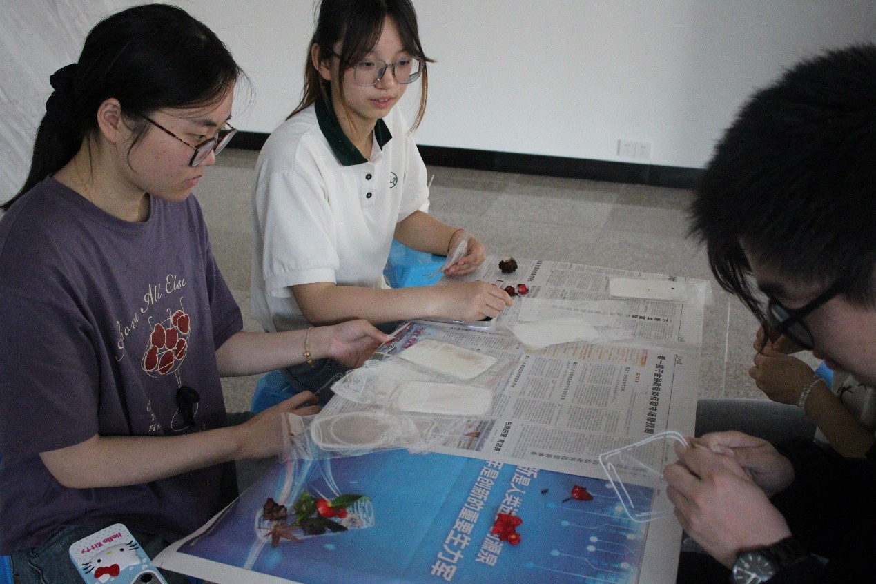 活动现场,五彩斑斓的落叶和落花铺满了桌面,仿佛是大自然精心准备的宝藏。同学们热情高涨,精心挑选着心仪的叶片与花瓣,充分发挥自己的创意与想象力,将这些自然元素巧妙地组合、粘贴。在制作过程中,同学们沉浸其中,忘却了学习和生活中的压力与烦恼,欢声笑语回荡在活动现场。每一片落叶、每一朵落花在同学们的巧手下,都焕发出了新的生机与活力,变成了一件件精美的艺术品。