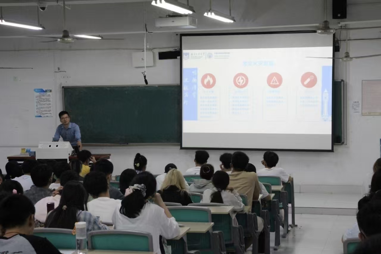 在消防安全部分,张健老师通过真实的校园火灾案例,深入剖析了宿舍违规用电、实验室操作不当等可能引发的火情,系统讲解了火灾预防、初期扑救及火场逃生的基本知识和技能,强调了“预防为主,生命至上”的原则。