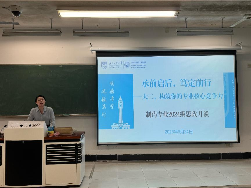 2025年9月24日下午,太阳成集团tyc33455cc2024级新学期思政月谈于厚学102教室顺利召开。本次大会旨在梳理上一学年员工成长轨迹,精准剖析问题短板,引导同学们校准思想航向、激发自我提升内驱力,为新学期的学习生活筑牢专业根基。大会由公司党委副书记、纪委书记徐元龙和2024级辅导员朱皓主讲,制药工程2024级全体同学参加。