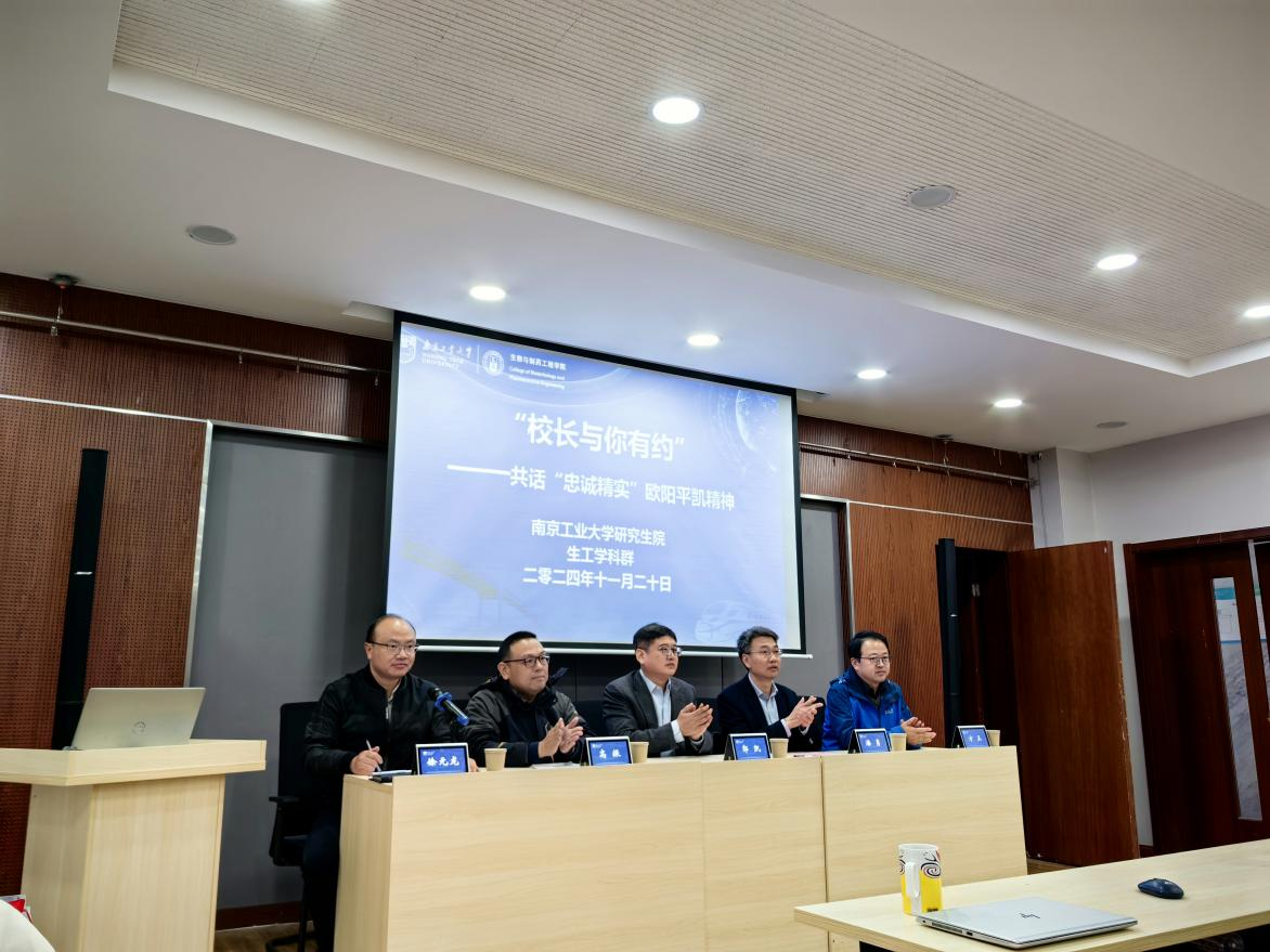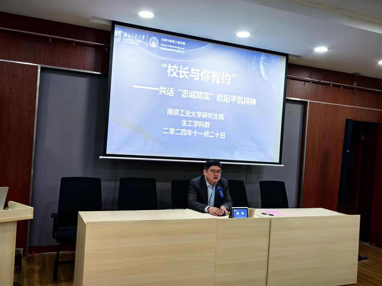 为进一步弘扬传承欧阳平凯精神,11月20日,由研究生院主办,太阳成集团tyc33455cc承办的 “董事长与你有约——共话‘忠诚精实’欧阳平凯精神”报告会在尚德楼A1报告厅隆重举行,该报告会是校研究生精品思政项目的系列活动之一。报告会特邀郭凯副董事长主讲,公司党委研究生工作部部长、研究生院经理潘勇,公司党委书记高振、副经理方正等出席活动。生工学科群100余名研究生代表参加报告会。会议由公司党委副书记徐元龙主持。