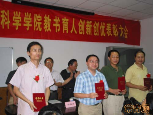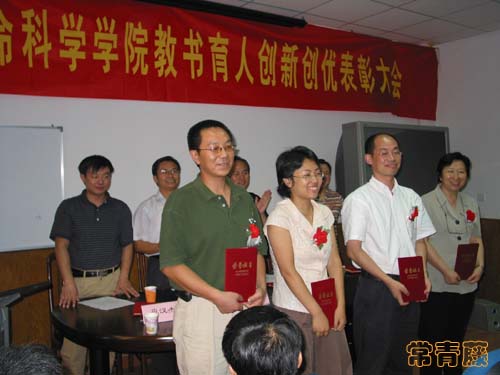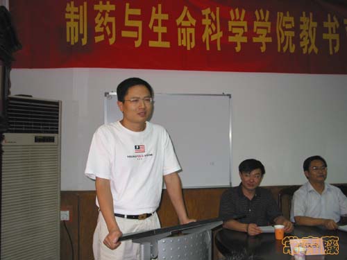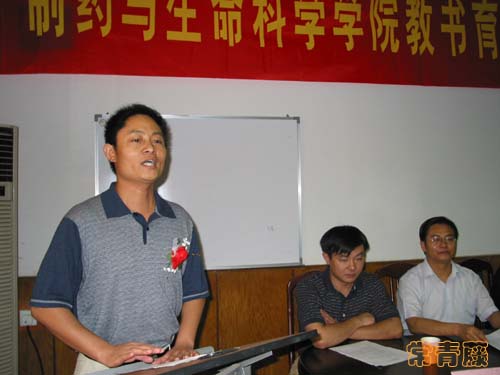 药学系主任陈国广博士代表先进集体、许琳教授代表先进个人、韩世清博士代表新教师,先后在会上发言。他们的发言充满了“爱与责任”、和谐创新的激情。
