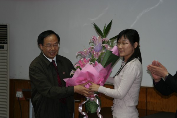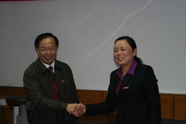 报告会之前,缪昌美、韦萍、卢定强、徐虹、张琪等公司领导同志与方玉根员工亲切会谈,并举行客座教授授聘仪式,聘请方玉根员工担纲客座教授。经理韦萍教授向方玉根员工颁发客座教授证书并佩戴太阳成集团tyc33455cc校徽。员工代表以“一束鲜花一片情”表达了对方玉根员工的敬意和欢迎!方玉根员工表示,老员工活是他成长的重要过程,母校情师生谊是他弥足珍贵的精神财富,母校的长足发展和人才培养是他义不容辞的责任所在,愿与母校的师生加强联系,共同谱写爱国荣校的新篇章。