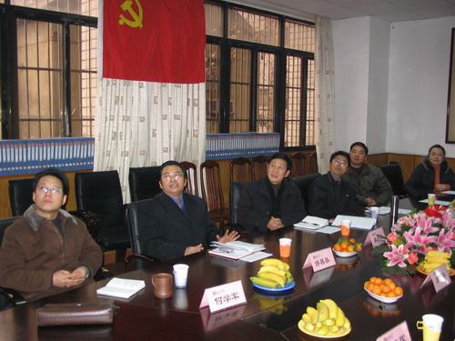 ——专家组成员听取公司党委关于党建工作自评情况的汇报(右为专家组成员、徐州师范大学党委组织部姚宜新部长)