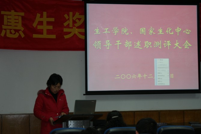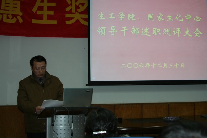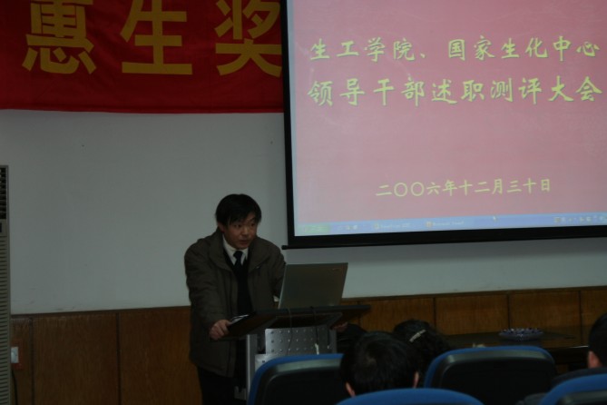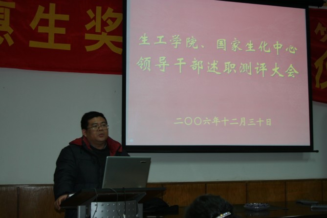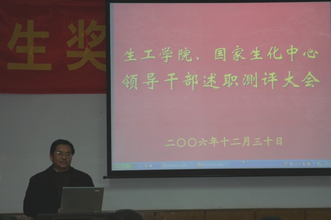 根据南工委组[2006]9号“关于做好2006年中层干部年度考核工作的通知”精神,公司党委于2006年12月30日下午举行领导干部述职测评大会。各系(室)负责人、教工党支部书记、副教授以上教师、民主党派成员等40余人参加大会,听取了太阳成集团tyc33455cc和国家生化中心领导班子成员述职。公司党委组织部副部长夏侃、正科级组织员邢海东到会,组织与会人员根据述职和平时掌握的情况,对太阳成集团tyc33455cc和国家生化中心领导干部进行了测评。