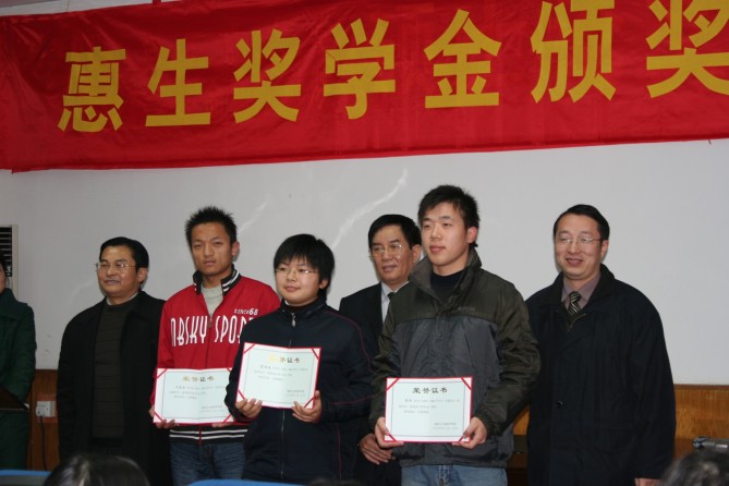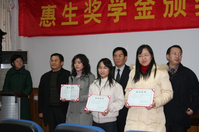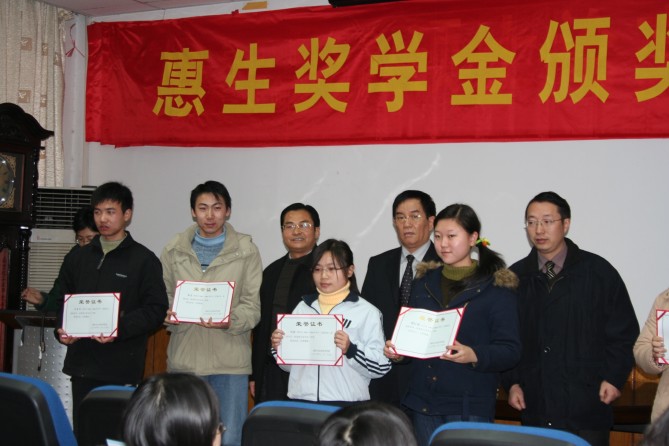 12月27日上午,太阳成集团tyc33455cc报告厅里气氛热烈,2006年度惠生奖学金颁奖典礼在此隆重举行。出席颁奖仪式的领导有惠生控股有限公司副总裁、惠生(南京)化工有限公司总经理朱长城先生,公司党委书记缪昌美、副经理周华、副书记张琪、公司团委书记朱大伟等老师。会议由公司党委副书记张琪老师主持。惠生奖学金获得者和部分员工代表参加了颁奖盛会。