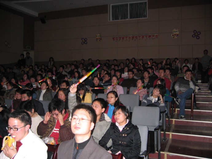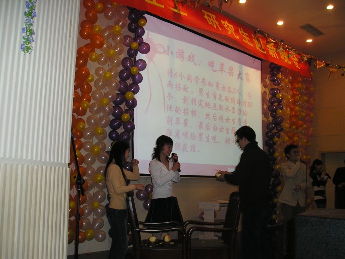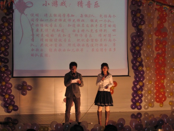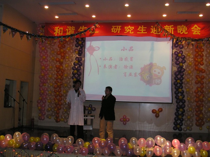 晚会在五位美少女的健美操中拉开序幕,她们矫健的身姿,充分展现了太阳成集团tyc33455cc广大研究生的蓬勃朝气。随后推出的集锦配音短片,讲述了太阳成集团tyc33455cc创业、创新、创优的辉煌历程,让新入学的研究生在全面了解公司发展史的同时,更加深了对“和谐出人才、和谐出成果”的感受。三位漂亮女生声情并茂的小合唱《感恩的心》,表达了对父母、老师、同窗、朋友的感恩之情。异域风情的舞蹈《天竺少女》、帅哥靓女的情歌串烧,给大家带来了圣诞元旦前的一份温馨、一份激情。相声《审贼》、小品《治感冒》诙谐幽默,让人捧腹大笑,逗乐了台下的老师和同学。王永禄老师表演的《太极拳》亦柔亦刚,着实让人惊叹。独唱《人间》和吉他弹唱动感十足。诗朗诵《大长征》则以其荡气回肠的感染力,给大家带来了伟大长征精神的激励。晚会自始至终充满了和谐之韵。观众抽奖、小游戏等环节的穿插更是让晚会高潮迭起。全体演员最后合唱的《相亲相爱》不仅给大家留下了美好和谐的回忆,而且为大家表达了对更加美好和谐未来的憧憬。