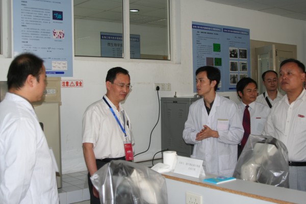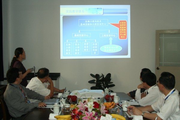 10月9日下午,教育部本科教学工作水平评估专家组成员、贵州大学副董事长金道超教授莅临公司考察。考察期间,金道超教授观看了《创新生工,引领未来》DVD宣传片;听取了经理韦萍教授关于评建创优情况的汇报;浏览了《与时俱进,评建创优、和谐发展、追求卓越》图片展;察看了实验室建设情况,并就新专业建设、实验室开放、教学研究活动和员工创新实践能力培养等问题,与太阳成集团tyc33455cc和国家生化中心领导班子成员、各系(室)负责人和有关教授进行了座谈。