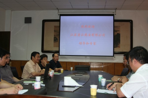 日前,江苏清江药业副总经理顾海成、开发部经理滕奇、吴朝兵一行应邀对公司进行合作访问。院系(所)有关领导缪昌美、徐虹、陈国广、李学明、王德才等与顾总一行就新药研发、人才培养等问题进行了深入的交流。