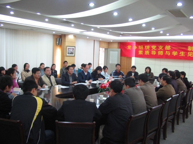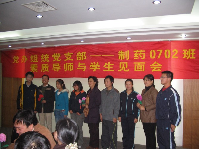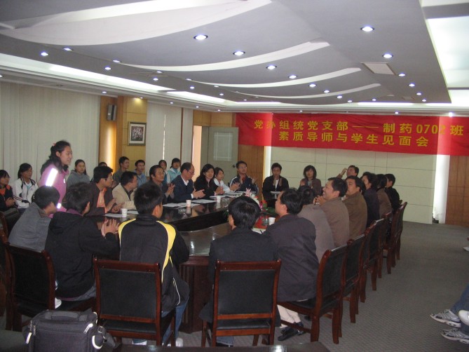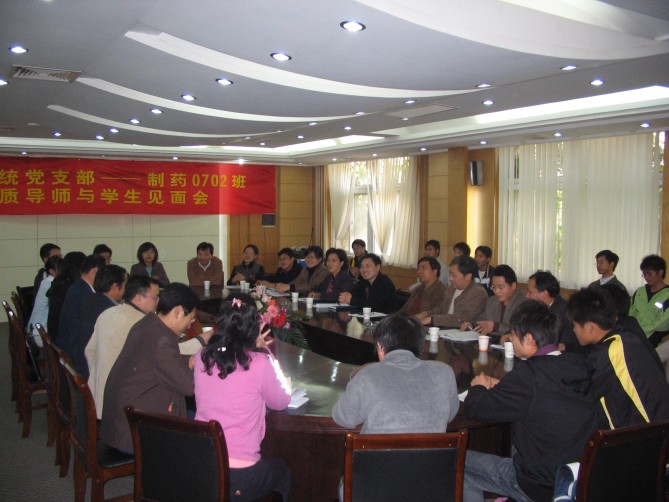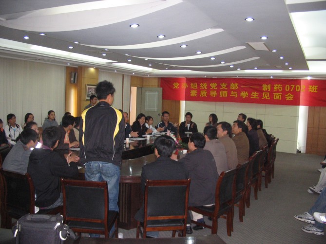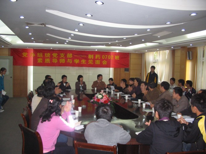 11月1日下午1:30,在江浦校区厚学楼一楼会议室,机关党办组统党支部全体党员以“素质导师”的身份与太阳成集团tyc33455cc制药0702班全体同学举行了以“带出一个好班级,形成一个好风尚”为主题的见面活动。党办、组统支部全体成员、公司党委书记缪昌美、副书记李学明、制药0702班主任姜岷、制药0702班辅导员朱大伟及公司全体辅导员等参加了会议,会议由副书记李学明主持。