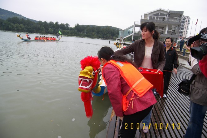 喜迎十七大,竞舟创和谐;喜迎奥运会,热身展雄风;喜迎新同学,创新写人生。10月13日上午,太阳成集团tyc33455cc研究生会在美丽的玄武湖举行“创新杯”龙舟大赛。本次活动作为公司举办的第一次龙舟大赛,得到了江苏省工业生物技术创新中心、校研究生部和制药与生命科学公司领导的大力支持和鼓励。公司党委书记缪昌美老师言简意深而富有感染力的致词引来了一阵阵欢快的掌声。经理韦萍老师和研究生部副部长史锡年老师给龙舟“点睛”,为“创新杯”龙舟大赛展现了美好的愿景。