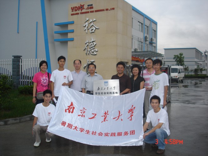 8月3日,由公司党委缪昌美书记、李学明副书记和分团委朱大伟老师、徐元龙老师率领的暑期社会实践服务团来到南京裕德恒精细化工有限公司进行参观学习,公司领导戴伍来、严崔玉等热情地接待了服务团的成员。