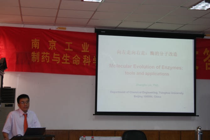 2007年5月28日上午,公司特聘兼职教授、清华大学林章凛教授来到公司,以《向左走,向右走:酶的分子改造》为题为公司师生做了一场精彩的学术报告。报告会由国家生化工程技术研究中心常务副主任应汉杰教授主持。江苏省工业生物技术创新中心主任黄和教授、副经理徐虹教授、生物技术专业负责人许琳教授,以及相关课题组的师生听取了报告。