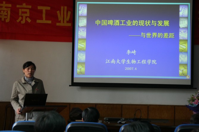 授聘仪式结束后,李崎教授以《中国啤酒工业的现状与发展——与世界的差距》为题为师生们做了一场精彩的学术报告。她从酒的概念及分类、中国啤酒工业现状、中国啤酒发展迫切需要解决的几个问题等方面进行了系统的论述。她的报告信息量之大、数据之新、思路之宽,令与会师生兴趣盎然,受益匪浅。
