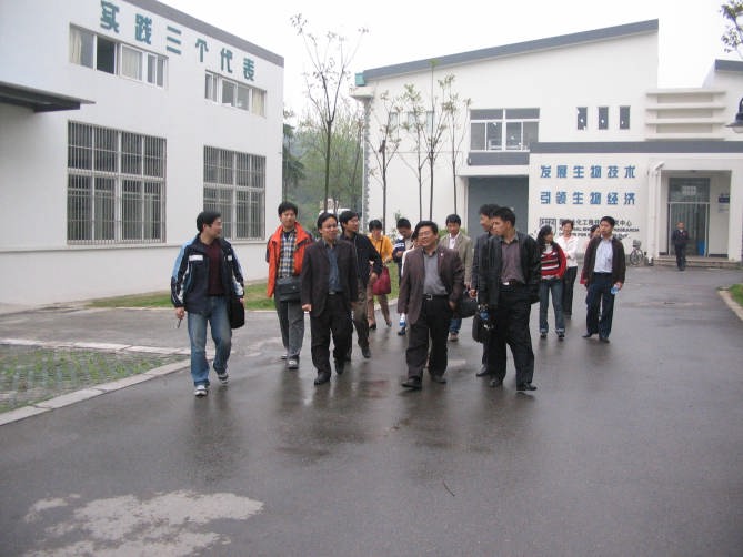 来到位于校园东北部的生化中心,大家首先看到的是“引领生物技术,发展生物经济”的巨幅标语,这里是一个现代化的产学研相结合的科研基地,已完成了1,6-二磷酸果糖、核苷酸、苹果酸等多个项目的产业化,取得了良好的经济效益和社会效益。卢定强副经理向大家介绍了取得的科研成果、研究动态,以及工程硕士研究生选题的注意事项,并带大家参观了中试车间。