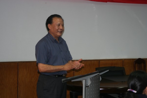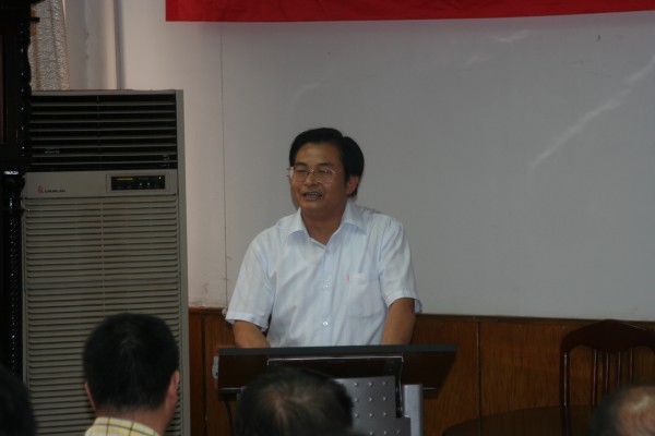 ——公司党委书记缪昌美同志致欢迎辞并介绍薛培俭、俞菊荣先生的学术成就