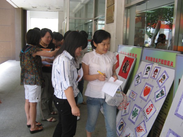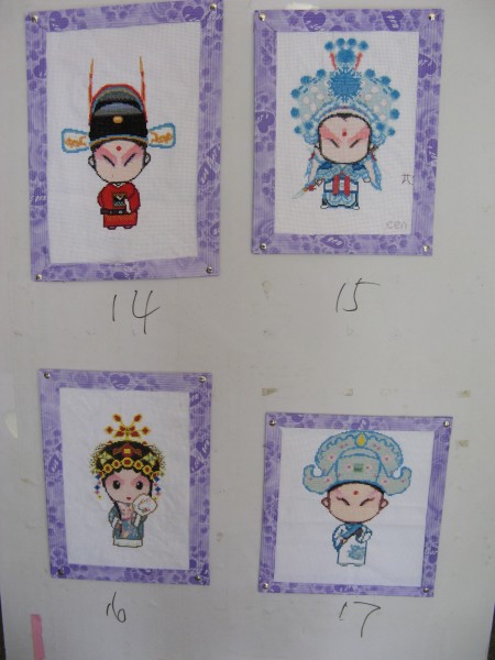 本次研究生十字绣大赛从5月4日开始,全校一百多名同学踊跃报名参与。5月20日-5月25日,大赛评委会对作品进行了中期检查,一方面了解作品进度,另一方面为了保证作品的真实性和原创性。参赛作品主题主要是喜迎奥运图案,另外还有家、和、福、顺及青衣、小生、武生、状元京剧脸谱等中国风的题材。各种题材均被参赛者的一双巧手用丝线编织得栩栩如生。