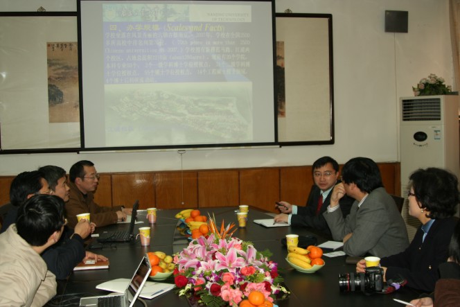 韩国KAIST大学(Korea Advanced Institute of Science and Technology)朴胜彬教授携夫人金圣淑女士日前莅临公司进行友好访问。公司党委书记缪昌美、副经理周华等老师与朴胜彬教授一行进行了亲切会谈。经理助理姜岷老师做了关于公司的介绍,包括办学历史及规模、办学宗旨、团队队伍和科研力量等。化工公司副经理王军教授也参加了会谈,重点介绍了化工公司的教学科研情况。朴教授就KAIST的办学历史及宗旨、教学科研等做了较为详细的介绍。