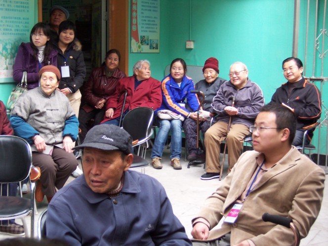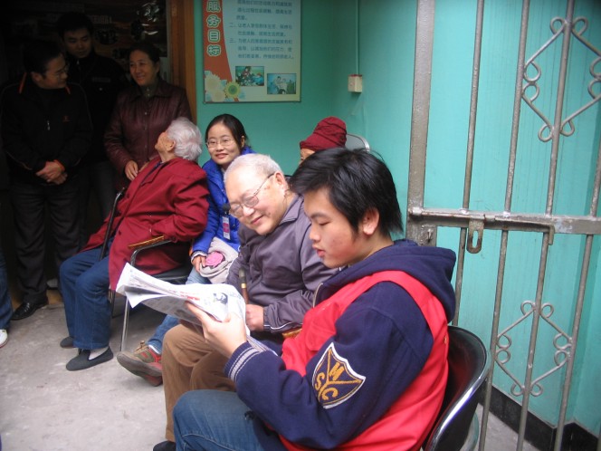 在观音里社区敬老院里,“爱心志愿者协会”的成员与老人们共同度过了一个愉快的、记忆深刻的上午。缪昌美老师代表大家向老人们致以了亲切的问候。同学们给敬老院的老人赠送了“暖手宝”,并表演了丰富多彩的娱乐节目,有黄梅戏《女驸马》选段、口琴《外婆的澎湖湾》、歌曲《南泥湾》,还即兴为老人表演了舞蹈。在一首首熟悉的旋律中,老人们的脸上露出了笑容,仿佛又回到了年轻的时代。在音乐声与欢笑声中,老人们敞开胸怀与同学们聊起他们的往事。他们对十七大提出“加快推进以改善民生为重点的社会建设”倍感欣慰。活动结束后,老人们和护理人员向爱心志愿者们表达了不尽的感激。爱心志愿者们向老人们挥手道别表示常来敬老院看看。其情其景让每个人都真切地感受到了关爱的力量和心中的温暖。