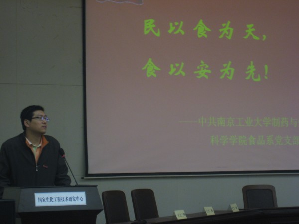 11月16日,食品党支部在国家生化中心会议室举行主题党日活动,公司党委书记缪昌美、副书记李学明、学办主任王浩、自考办主任吴玲燕应邀出席,教务处副处长食品系系主任熊晓辉、食品党支部书记、系副主任熊强和孙芸等老师出席。民以食为天,食以安为先,国家轻工业质量监测站南京站副站长游京晶就国内外食品领域出现的安全问题做了主题报告。