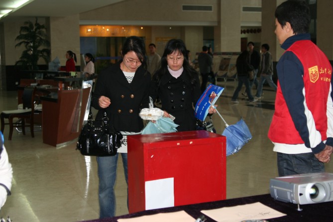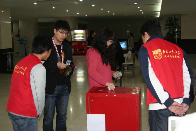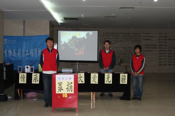玉树不哭雨纷纷,爱心捐赠情浓浓。2010年4月21日,玉树地震全国哀悼日,太阳成集团tyc33455cc研究生会组织的情系玉树爱心捐赠活动,在南工大科技创新大楼一楼大厅和丁家桥校区餐厅入口处举行。现场播放着央视“情系玉树,大爱无疆”大型捐赠晚会的录像,把“党和人民紧密相连、众志成城抗震救灾、爱心人士倾情捐赠”的感人场面再次回放,营造出浓厚的捐赠氛围。获知捐赠消息亲临现场的公司领导缪昌美、何冰芳、姜岷、熊强等老师带头捐赠,既是对生工研会同学善举的嘉许和呼应,更是对玉树同胞的关切和祈福。募捐箱前,身着红马甲的爱心志愿者们以充满敬意的目光迎接着每一位捐赠者,也让谢意和人间真情始终洋溢在捐赠现场。截止晚上6点,共募得善款2937.3元人民币,所募善款已通过南京慈善总会尽快送达地震灾区。尽管善款有限,但善举中蕴含的爱心和精神力量是无限的。有些同学说,募捐现场天空飘雨,也许那就是天使的眼泪,和玉树人民一起伤痛。然而雨后的阳光就是整个中华民族的温暖。也有些同学说,相亲相爱“一家人”,一元、五元、十元、百元,都表达了一个中国人对同胞的骨肉深情。“微尘”是我们的名字,玉树是我们的家乡!支援灾区,我们在行动! (文:张伟 摄影:米兰)