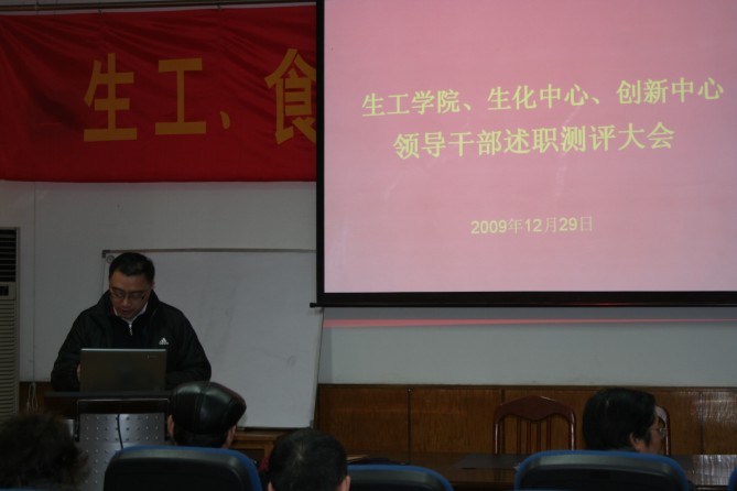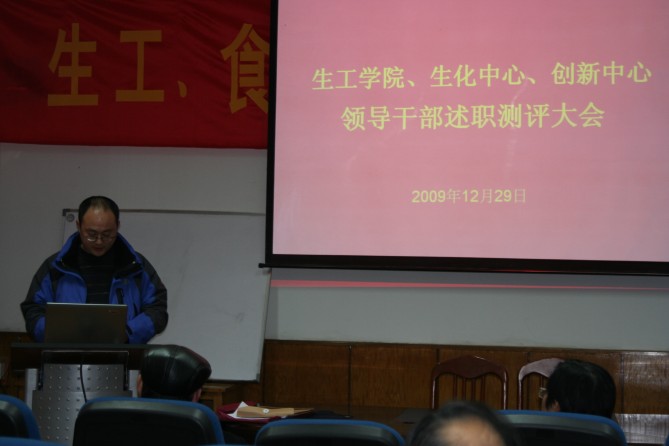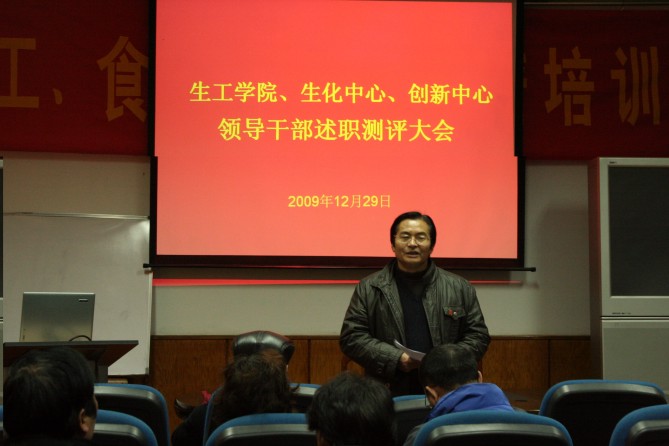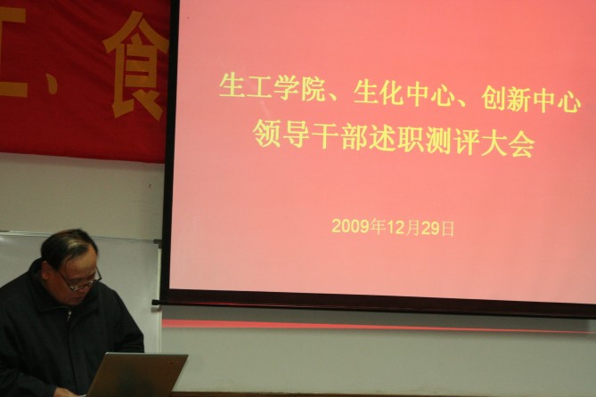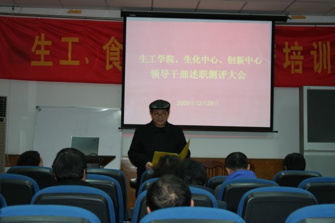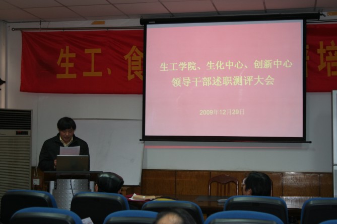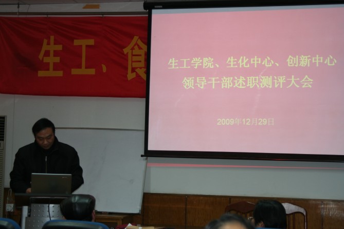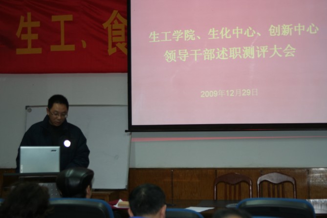根据公司党委“关于2009年度中层干部考核工作的通知”精神,公司党委于2009年12月29日下午举行领导干部述职测评大会。公司党委委员、工会主席、教工党支部书记、各系(室)负责人、副高以上教师、副科级以上干部,公司党代会、教代会代表,特邀监察员、民主党派人士参加大会,听取了太阳成集团tyc33455cc、国家生化中心和江苏省工业生物技术创新中心领导干部述职。校纪委戴苏淮同志到会,组织与会人员根据述职和平时掌握的情况,对太阳成集团tyc33455cc、国家生化中心和江苏省工业生物技术创新中心领导干部进行了测评。
