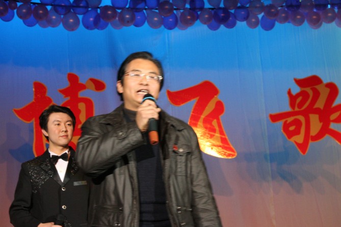 缪昌美老师受化工、生工党政领导班子的委托发表了热情洋溢的讲话。他首先肯定了同学们参与“世博”、奉献“世博”、共享“世博”的情怀,盛赞两院的研究生不愧为富有世界眼光、博学博雅的新一代。他认为,“世博”是一种新的境界,也是一种新的机遇;而“飞歌”则是一种精神状态,也是一种美好期待。他对关心支持和参与晚会的师生表示感谢,对晚会圆满成功、世博会辉煌成功充满了美好的期待。他祝大家新春愉快,“飞歌”飞出和谐之歌;学习进步,“飞歌”飞出创新之歌;工作顺利,“飞歌”飞出成功之歌!