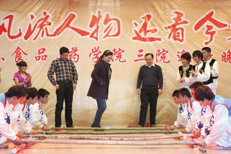 2010年11月15日晚6:30,浦江报告厅内座无虚席,整个会场充满了欢声笑语,洋溢着青春的气息。由校团委主办,生工、食品、药公司三院分团委共同承办的2010级“数风流人物,还看今朝”迎新晚会在此隆重举行。员工处副处长杨琦、校团委副书记冷庆丰、三院领导缪昌美、熊晓辉、周华、徐虹、熊强、陈晓晔、陈国广,以及2010级新生班主任、辅导员和各兄弟公司员工会主席应邀出席并观看了本场晚会。