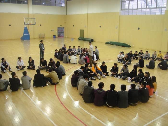 吃完中饭后,“凯集杯”训练营的集训继续进行。像上午一样,教练首先安排队员做一些小游戏,比如“支援前线”。意在使学员进一步深入了解自己的同伴,更加体现出团队协作精神。