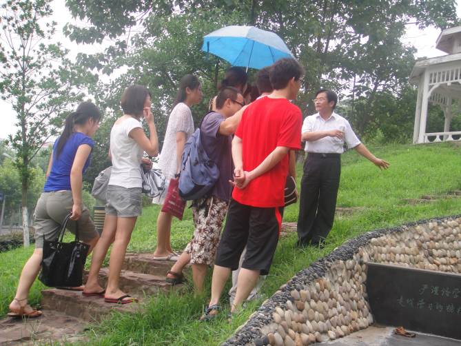 当天下午,研究生会的骨干们顶着炎炎烈日参观了时钧园,给这位为祖国的化工事业、教育事业奋斗终身的老前辈敬献了鲜花。缪书记声情并茂地为我们讲述了时钧院士的生平事迹。我们了解到时钧院士不仅仅治学严谨,还将他的道德文章传授给了无数的员工,其中有16名员工和他一样也成为了院士,并且为祖国的科技事业做出了卓越的贡献。时钧院士把“创先争优”融入执着的追求,在92岁高龄时光荣地加入中国共产党,令我们在肃然起敬中受到了精神上的洗礼。我们轻轻地诵读着院士们为他们的导师写的题词,感受着时钧院士爱国奉献的道德精神,我们更深刻体会到,创先争优并不应是一时的目标,而应该把它贯彻到我们的生命长河中,这样才能让我们的生命熠熠发光。