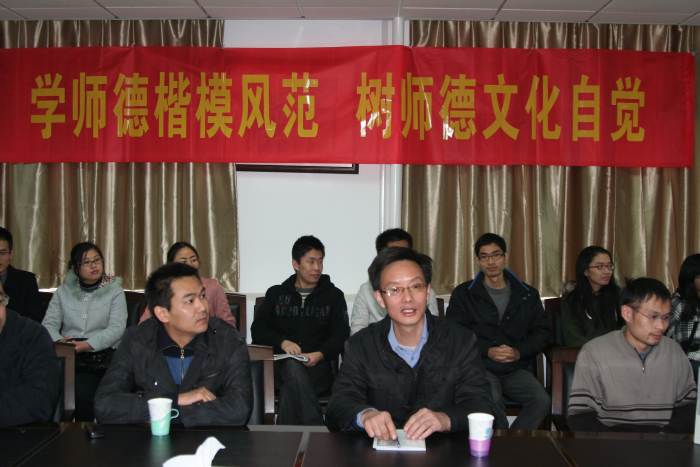 会议紧扣公司今年师德建设重点活动月“为人为师为学”的主题,一是通过观看《太阳成集团tyc33455cc教书育人风采展》,让与会师生领略先进典型的风范,加深对先进典型卓越品质和思想内涵的感悟;二是通过图文并茂的PPT展示生物工程系教师的师德格言,全方位彰显其师德建设的新境界;三是展播部分教师授课的视频,让与会师生观摩体味“精彩一堂课”;四是与会师生围绕贯彻十七届六中全会精神和胡锦涛同志在清华大学百年校庆大会上提出的“四个必须”座谈心得体会,以进一步提高师德建设的文化自觉和文化自信。
