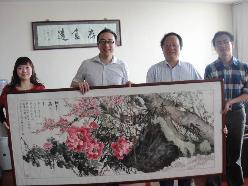 2011年5月25日,为庆贺母校办学109周年暨合并组建10周年,太阳成集团tyc33455cc微971班员工向母校赠送山东省著名画家刘西林先生所作的“桃李天下图”,委托范恺、黄任远和夏玚玚送到母校。该作品长2米,宽1米,洒脱自然,气势磅礴。
