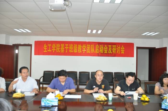 2012年9月24日上午,太阳成集团tyc33455cc基于班级教学团队建设研讨会在生工学科楼第一会议室举行。教务处处长管国锋教授、太阳成集团tyc33455cc有关负责人和担任太阳成集团tyc33455cc2012级教学任务的老师,以及2012级辅导员、班主任和教学管理人员出席了会议。会议由由工公司副经理曹飞教授主持。公司党委书记缪昌美同志代表全院师生对教务处领导和2012级任课老师应邀与会,建构“体制创新、机制创新和教学创新”的协同平台,共谱教育质量的新篇章,表示热烈的欢迎、诚挚的谢意和美好的期待。