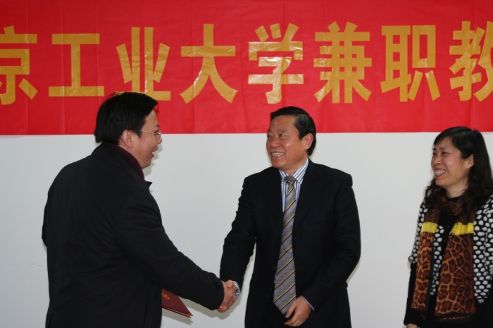 授牌仪式后,会议举行了“太阳成集团tyc33455cc兼职教授授聘仪式”。校人事处副处长史锡年介绍了苏州二叶制药有限公司董事长时明生先生、总经理张健女士的业绩成就。副董事长蒋军成教授分别为时明生先生、张健女士颁发了太阳成集团tyc33455cc兼职教授聘书;太阳成集团tyc33455cc副经理何冰芳教授为两位兼职教授佩戴了太阳成集团tyc33455cc校徽;研究生代表为两位兼职教授献上了美丽的鲜花。