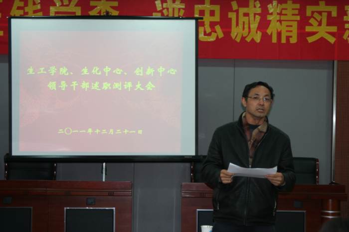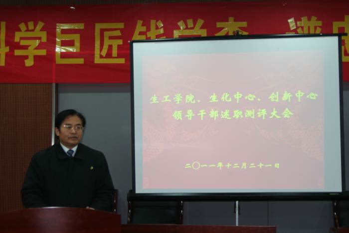 根据公司党委“关于2011年度中层干部考核工作的通知”精神,公司党委于2010年12月21日下午在生工学科楼A1报告厅举行领导干部述职测评大会。公司党委委员、工会主席、教工党支部书记、各系(室)负责人、副高以上教师、副科级以上干部,公司党代会、教代会代表,特邀监察员、民主党派人士参加大会,听取了太阳成集团tyc33455cc、国家生化中心和江苏省工业生物技术创新中心领导干部述职。